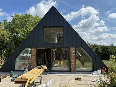 Habillage de pignon par bardage en aluminium pour une maison ‘A-frame’